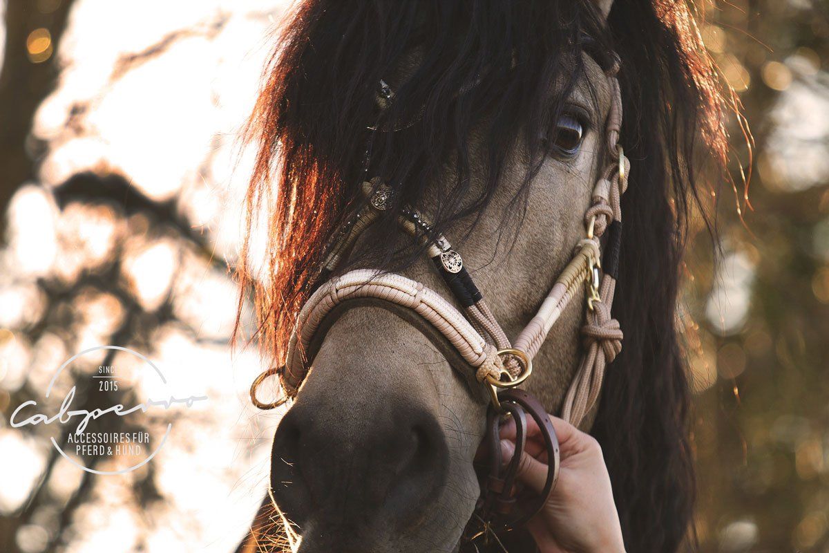 Mit ausgewählten Farben des Falben, verschmelzt dieser Traumzaum mit der Fellfarbe des Falben.