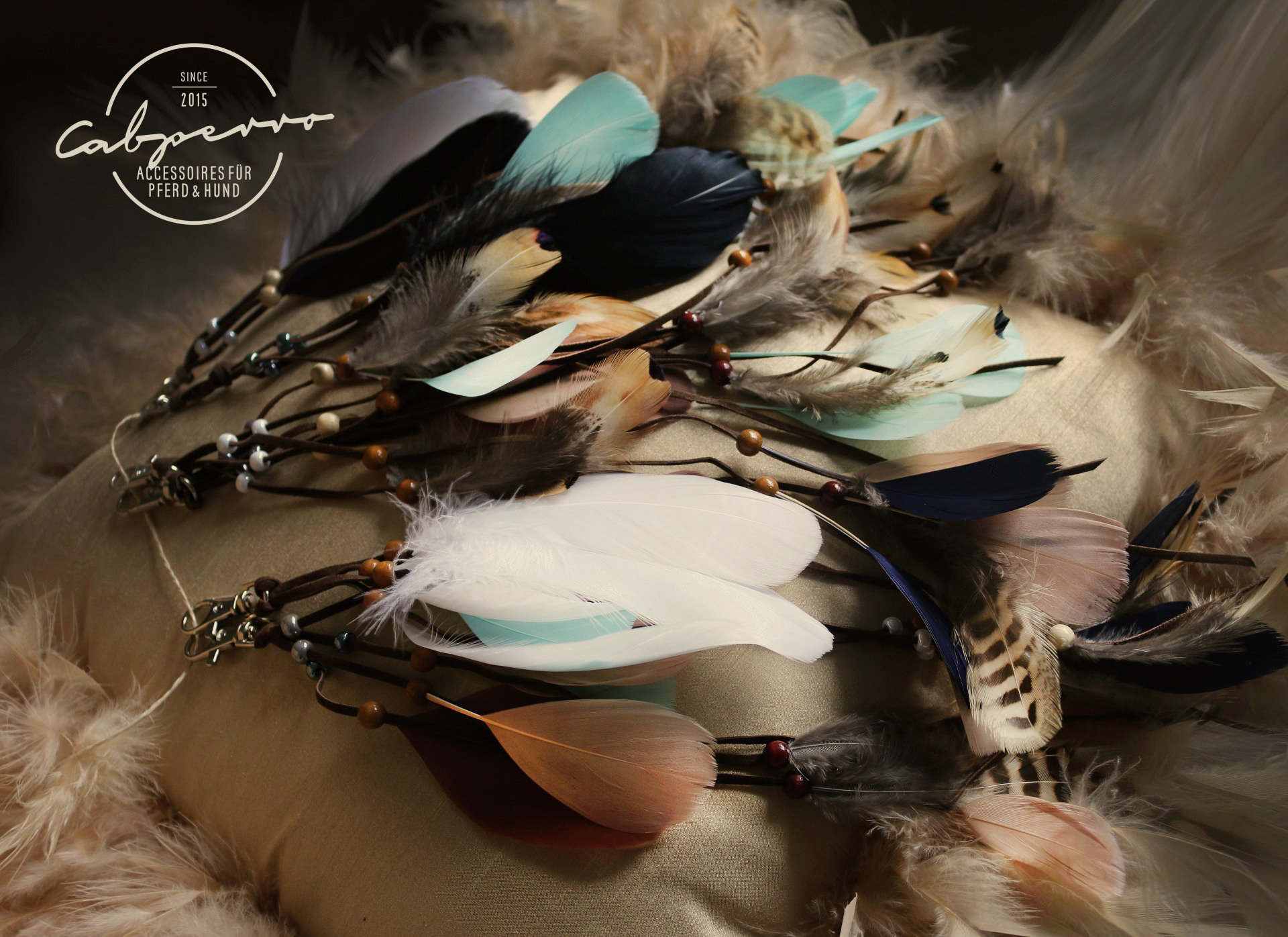 Mähnenschmuckanhänger mit Federn: Länge ca. 30-40 cm